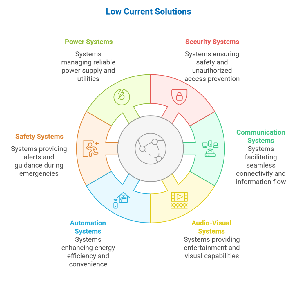 Our IT & Low-current solutions include Security and Surveillance Systems, Audio-Visual Systems, Building and Home Automation
